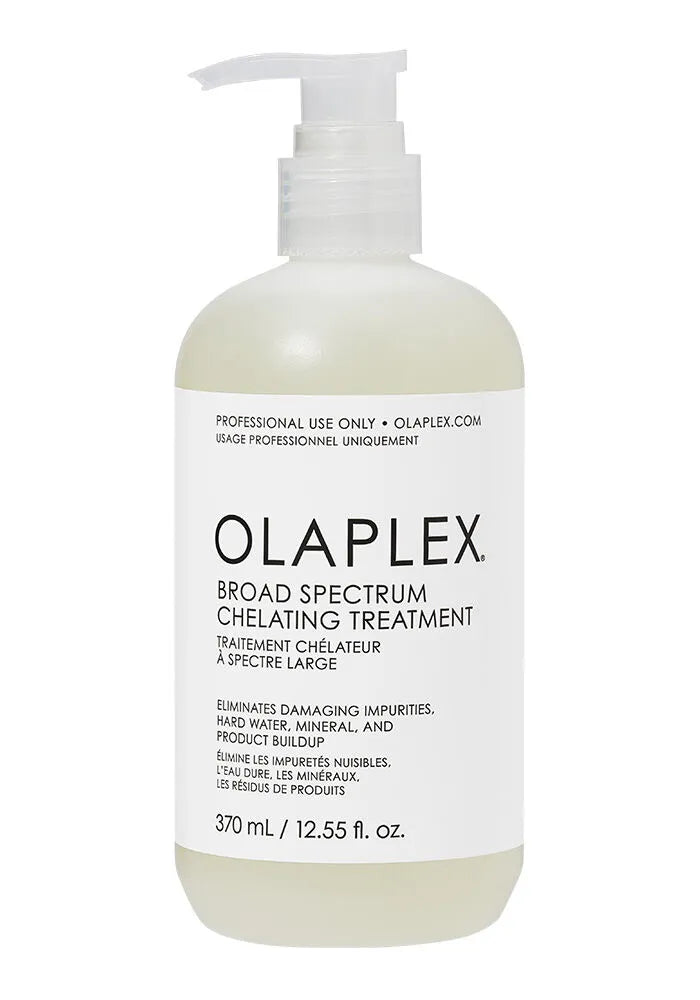 Apply Olaplex Broad Spectrum Chelating Treatment to hair in sections, focusing on areas with impurities and build-up. Leave on for 30 minutes.